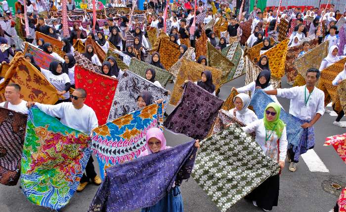 周日(10月26日),在中爪哇省马格朗市(Magelang)广场区域举行的蜡染魅力和谐系列活动上,众多表演者展示了蜡染花卉舞蹈。印尼世界纪录博物馆(简称MURI)记录了一项国家纪录,共有15,000名参与者使用2,000种蜡染图案布料进行舞蹈表演。(lcm)
