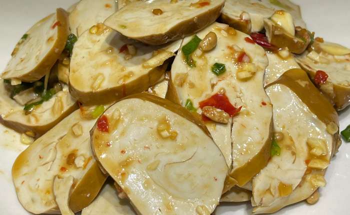 从原材料选择上,仿荤菜可分为几类。一是豆类仿荤,选用大豆蛋白质,再配合淀粉、海藻胶等,制成素鸡、素鸭、素火腿等产品。二是面筋类仿荤,面筋主要成分是麦胶蛋白和麦谷蛋白,应用范围也广,比如素排骨就是用面筋包藕条制作而成。三是菇类仿荤,比如用香菇梗做成牛肉干,用猴头菇仿制肉丸、羊肉串,将干香菇通过泡水、挤压、打碎等工艺,制成有嚼劲的素羊腩、素肉松等。四是魔芋仿荤,先将烘干的魔芋打成魔芋精粉,再制成素鱿鱼、素虾仁、素海参等产品。